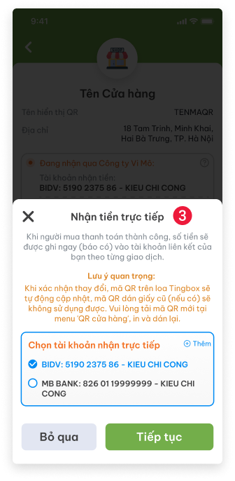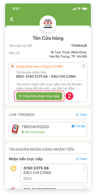 - (số 2) Chọn Cấu hình nhận trực tiếp nếu đã liên kết tài khoản ngân hàng.