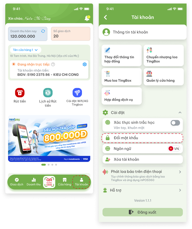 - Nếu quên mật khẩu hiện tại, hãy chọn “Quên mật khẩu” tại màn hình đăng nhập để khôi phục