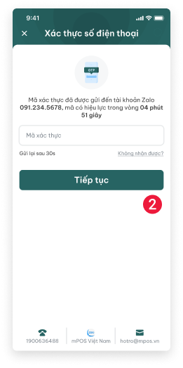 - (Số 2) Nhập mã xác thực sau đó ấn Tiếp tục