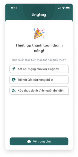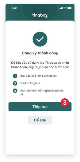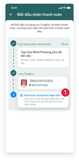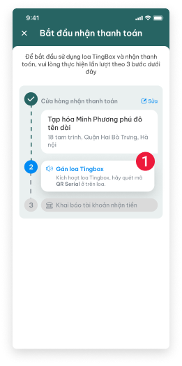 Để bắt đầu sử dụng loa TingBox và nhận thanh toán, vui lòng thực hiện lần lượt theo 3 bước dưới đây: