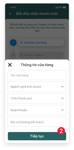 - (số 2) Nhập đầy đủ thông tin sau đó ấn Tiếp tục