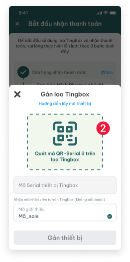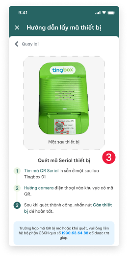 - (số 2) Quét mã QR-Serial ở trên loa Tingbox