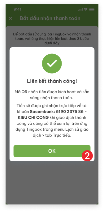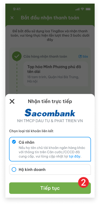Sau khi đăng ký tài khoản Tingbox.vn, Quý khách khai báo cửa hàng, gán thiết bị và “Khai báo tài khoản nhận tiền”