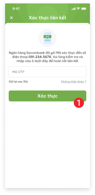Ngân hàng sẽ gửi mã xác thực đến số điện thoại bạn đã đăng ký. Nếu không nhận được, vui lòng liên hệ ngân hàng để được hỗ trợ.