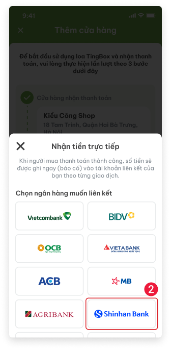 - (số 2) Chọn ngân hàng Shinhan Bank