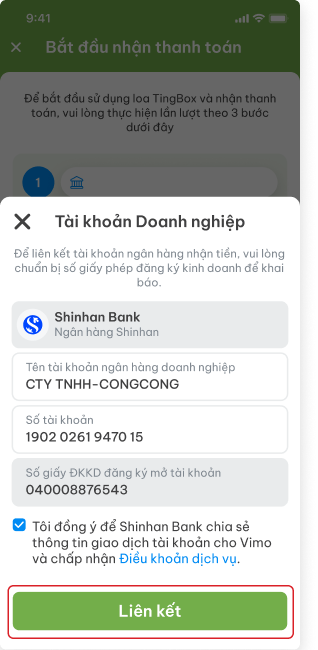 Nhập đầy đủ thông tin và ấn Liên kết